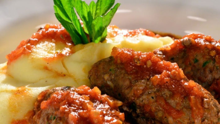 - Πρώτο πιάτο: Σουτζουκάκι πουρέ